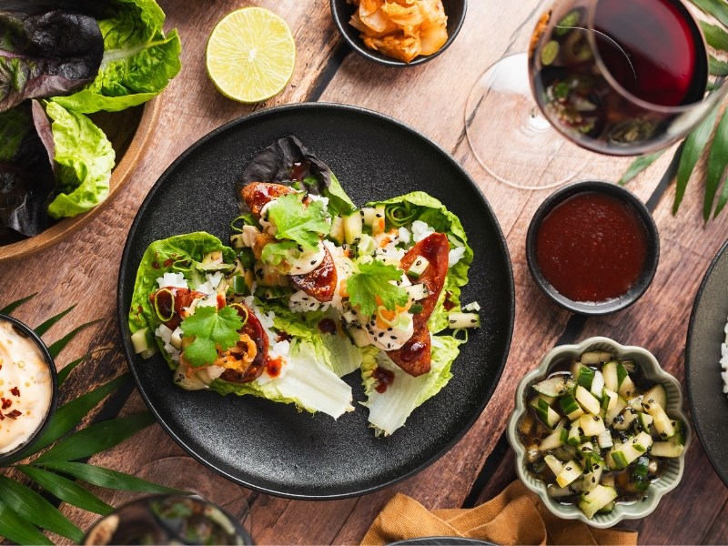 Ssam eli korealaiset salaattikääryleet täytetään tyypillisesti grillatuilla lihoilla, riisillä ja mausteilla. Yhdistä espanjalaisen chorizon savuiset ja täyteläiset maut perinteisten korealaisten lisukkeiden kanssa, jolloin lopputulos on mausteinen, suolainen ja aavistuksen savuinen makuelämys, jossa on raikas rapeus salaatista. Täydellinen pari Riojan punaviinille! Cáceresin Crianza sopii erinomaisesti chorizon täyteläisyyden ja gochujangin mausteisuuden kanssa. Viinin pehmeät tanniinit ja monivivahteiset maut tasapainottavat chorizon lämpöä ja rasvaisuutta, samalla korostaen annoksen syvempiä makuja.