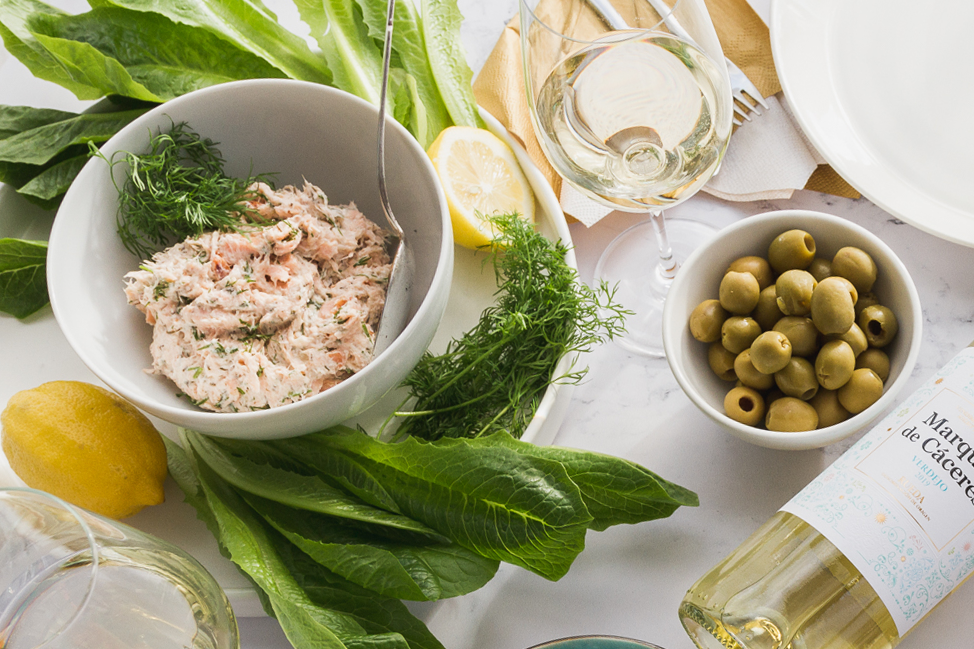 Loimulohi ei varsinaisesti kuulu espanjalaiseen ruokakulttuuriin, mutta sopii mainiosti suomalaiseen tapaspöytään varsinkin joulun alla! Mousse on lisäksi mainio makupari Verdejo-viinin kanssa nautittavaksi, molemmissa maistuu kivasti vihreä yrttisyys, ja viinin hapokkuus ja hedelmäisyys tuovat tasapainoa annoksen suolaisuudelle ja kermaisuudelle.