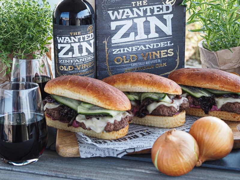 Burgerisi nousee uudelle tasolle, kun otat mehevän hilloisen italialaisen The Wanted Zin -punaviinin rohkeasti mukaan myös burgerin reseptiikkaan. Punaviinisipulihillo ja -majoneesi täydentävät kuohkeiden briossisämpylöiden, kunnon burgeripihvien, täyteläisen italialaisen provolone picante -juuston ja pikkelikurkkujen pohjustaman kokonaisuuden täydelliseksi makuelämykseksi.