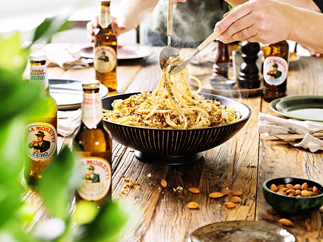 Konstailematon ja tyylikäs maa-artisokka-mantelipasta sopii sellaisenaan pääruoaksi tai italialaiseen tyyliin primi piattiksi. Se on saanut inspiraationsa helsinkiläisen Goose Pastabarin hittiruokalajista. Kasvispastan kastikkeessa juhlivat pehmeä maa-artisokkasose, parmesaani ja sitruuna, ja sen koukuttavin yksityiskohta on paahdetuista leipä- ja mantelimuruista tehty muruseos, joka ripotellaan valmiin annoksen päälle.