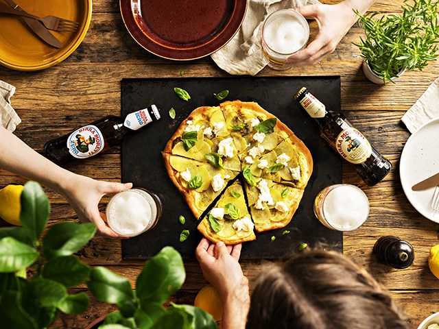 Roomalaiseen pizzatraditioon kuuluvan pizzan päätähtenä on yksinkertainen, edullinen ja herkullinen täyte: peruna. Ohuenohuet perunaviipaleet ladotaan pizzapohjalle ranskankerman ja peston päälle, ja ne kypsyvät kuumassa uunissa vastustamattoman rapeiksi. Tarjoa mozzarellalla ja basilikalla viimeisteltyä perunapizzaa Birra Morettin kanssa ja vietä täydellinen pizzailta ystävien kesken!