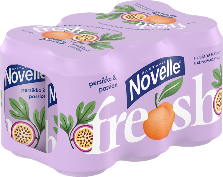 Novelle Fresh on tämän päivän luonnollinen ja kevyt janojuoma. Juoman pohjana on raikas kuplavesi, ja herkullinen persikan ja passionhedelmän maku tulee tilkasta täysmehua. Juoma on riisuttu kaikesta turhasta; siinä ei ole lisättyä sokeria eikä keinomakeutusaineita. Juoman makeus tulee vain ja ainoastaan mehusta ja sokeria siinä on alle 0,5g/100ml.