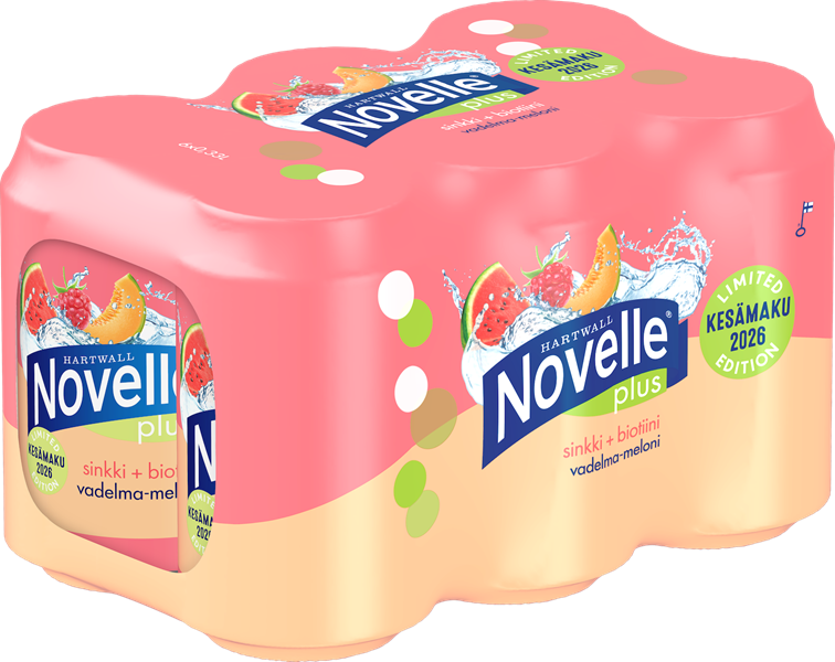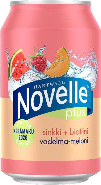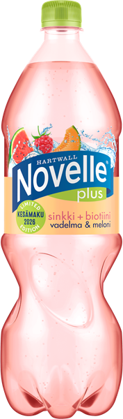 Novelle Plus Limited Edition Vadelma‐Meloni on matalahiilihappoinen, raikas ja herkullinen juoma, jossa yhdistyy iholle olennaiset sinkki ja biotiini sekä kesäinen maku: vadelma‐meloni. Sinkki edistää normaalia A‐vitamiinin aineenvaihduntaa ja biotiini edistää ihon pysymistä normaalina. Juoma on vähäkalorinen ja sisältää sokeria vain 3,5 g / 100ml.