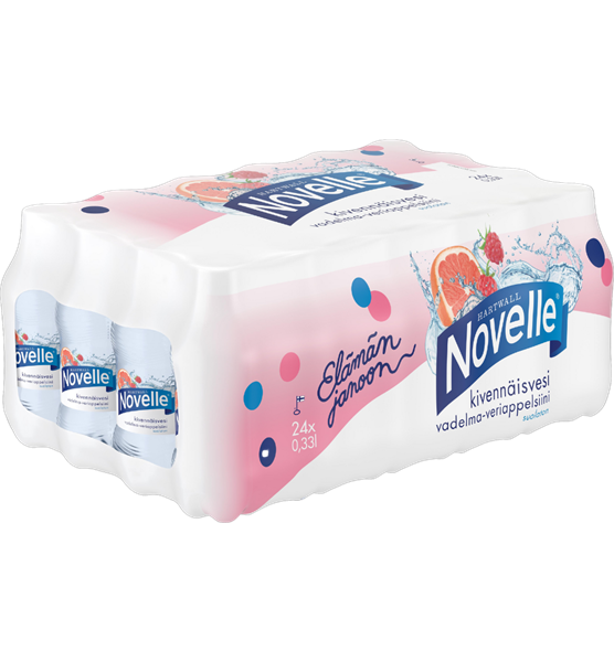Hartwall Novelle Vadelma-veriappelsiini on matalahiilihappoinen, luontaisilla aromeilla maustettu kivennäisvesijuoma, joka on valmistettu Salpauselän soraharjujen suodattamaan pohjaveteen. Novelle Vadelma-veriappelsiini -kivennäisvesijuoma on suolaton, kaloriton ja sokeriton.